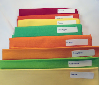 I've just been getting to know Katie lately; have been following Faith on facebook for a while, and am a huge fan of Lee due to W.i.P. Wednesdays and the Supernova qa. So having them all host this series is very exciting. Here's the fabric I'm going to use, still labeled up from my stash of Kona solids.