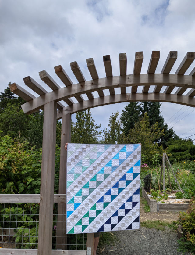 It's quilted with a simple diagonal grid which I think accents the design nicely, while keeping the quilt comfy cozy.