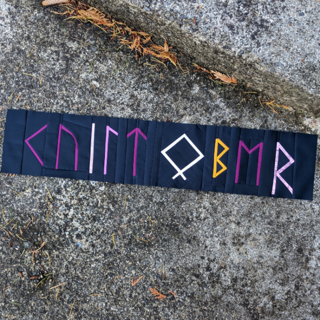 Day XIII - Rune :: Ahhh, Rune. I'm sorry, but I wasn't even sure I knew what the word meant! According to dictionary.com: "any of the characters of certain ancient alphabets" or "something written or inscribed in such characters." OK. That I could work with. Somehow in my search, I happened upon a rune translator on pbs.org. (!!) Rather than type in my name, I entered 'Quiltober' and this is what came up!
